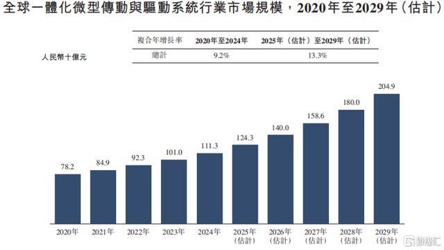 正在上述使用场景及日益增加的场景化设想需求的鞭策下,全球一体化微型传动取驱动系统行业规模已从2020年的782亿元增加至2024年的1113亿元,复合年增加率为9。2%。