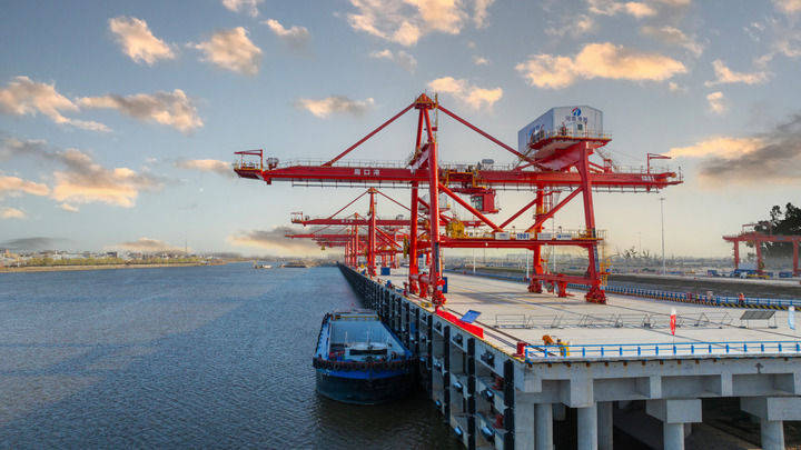 船埠上桥吊林立,千吨级货轮穿越往来。做为全国36个内河次要口岸之一,刚建成河南首个百万级公用集拆箱船埠的周口港核心港区核心功课区热闹不凡。一批批来自山西的煤炭、豫北的粮食、河南当地的化肥,从这里登船,经沙颍河入淮河、通长江,中转沿海口岸。
