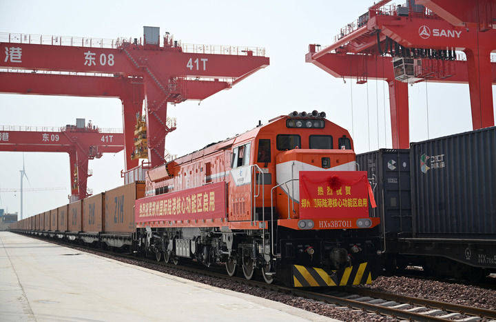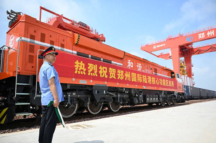 2025年6月28日,一班列车正在郑州国际陆港焦点功能区停靠。当日,郑州国际陆港焦点功能区正式启用。